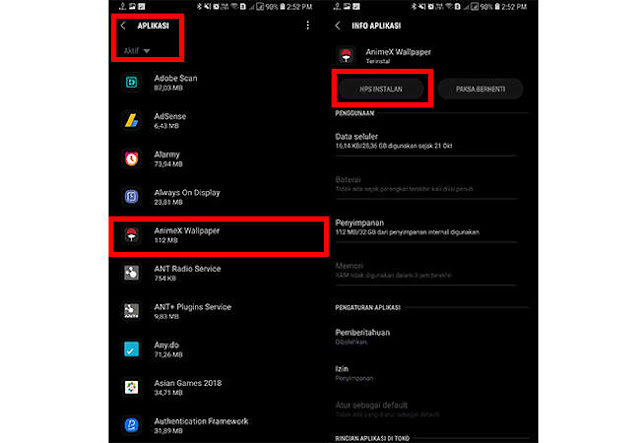 Cara yang kedua adalah dengan menghapus aplikasi aktif atau aplikasi yang sedang berjalan dan mencurigakan.
